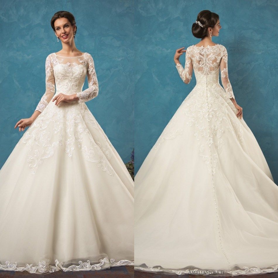 Category Article 2017, Amelia, Applique, Dresses, Jewel, lace, long, Neck, sleeve, Sposa, wedding